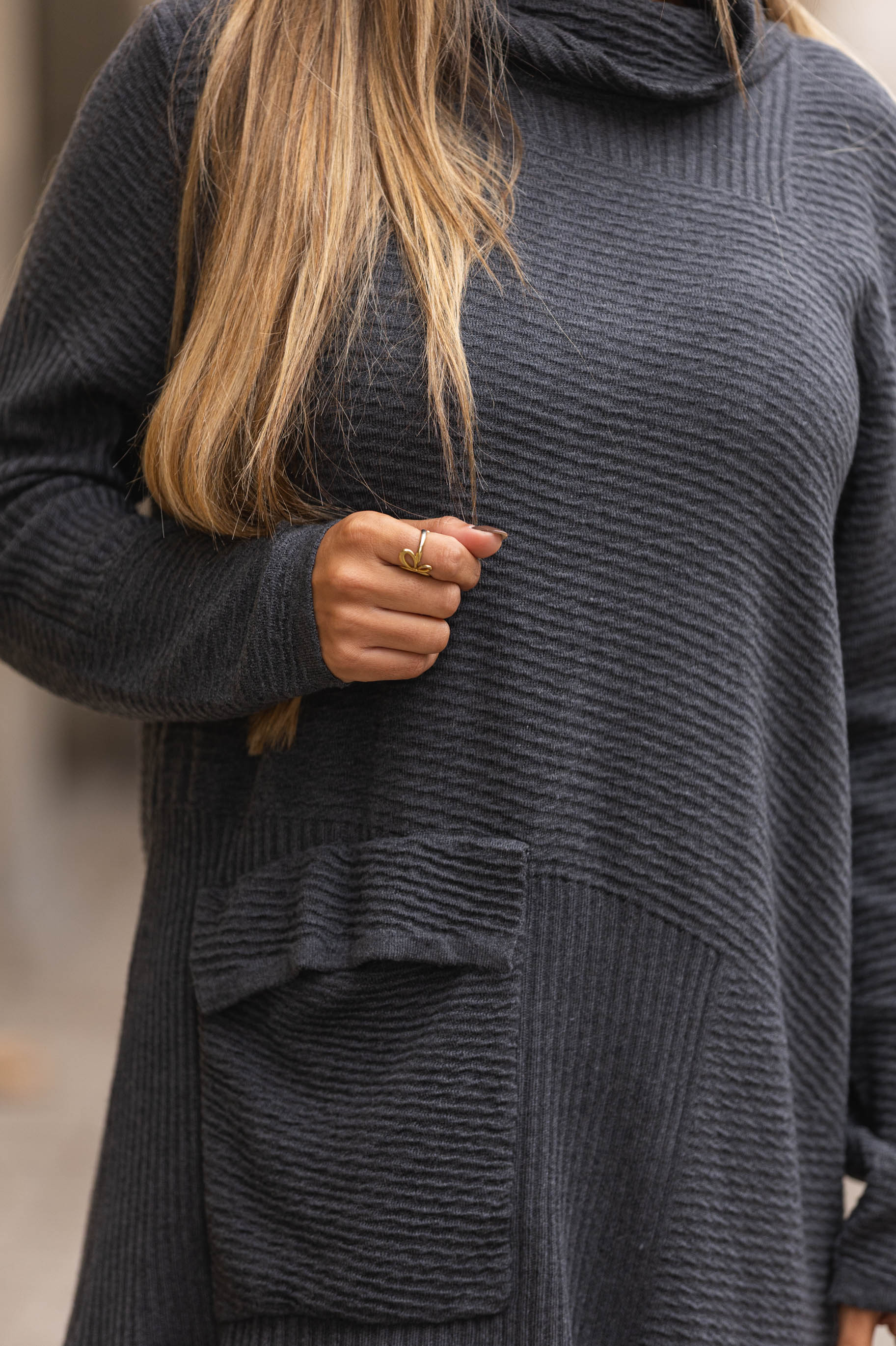Vestudo em malha com meia gola e manga comprida. Super confortável, a malha nao pica e veste soltinho. A modelo está com o S/M.