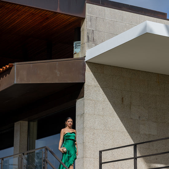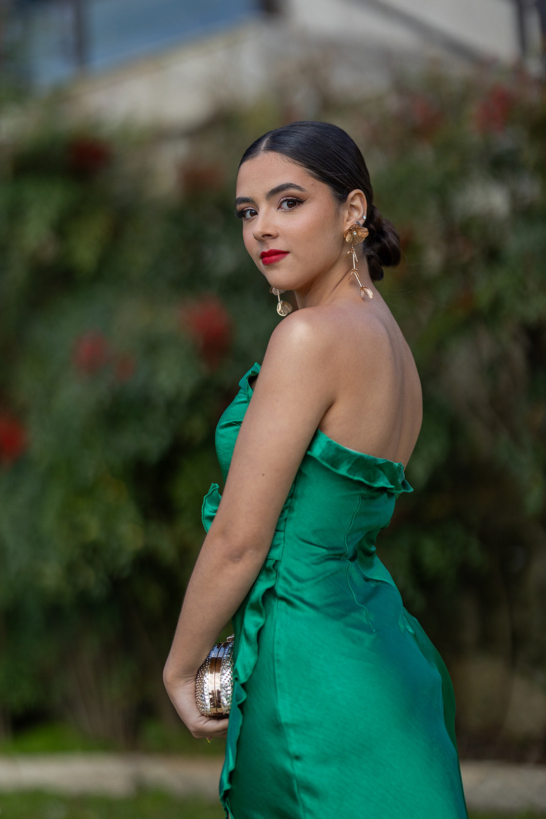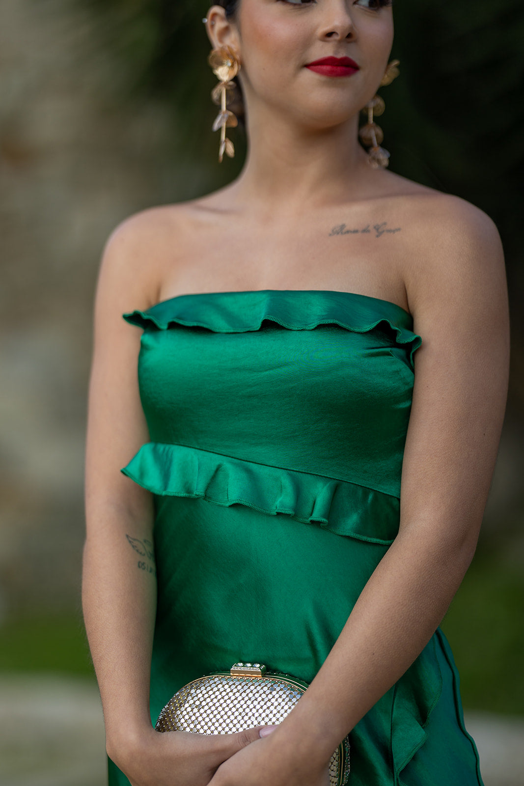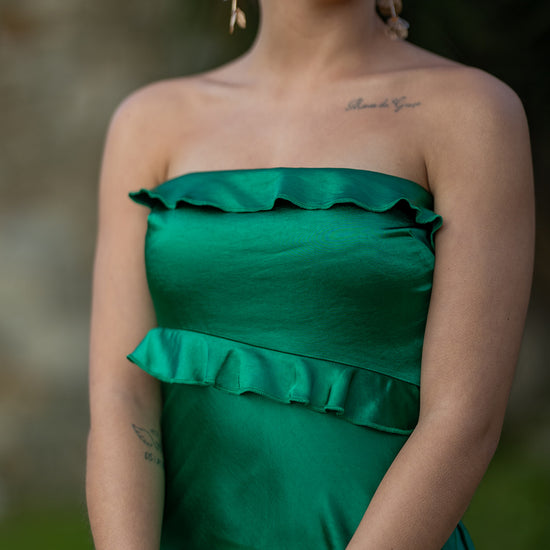Vestido cai-cai com pormenor de folho por todo o remate.