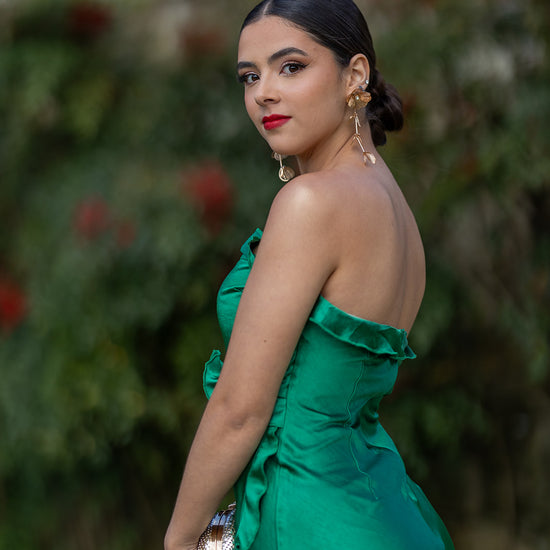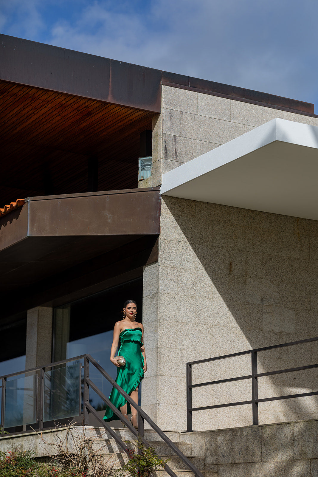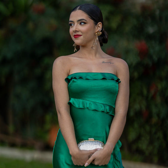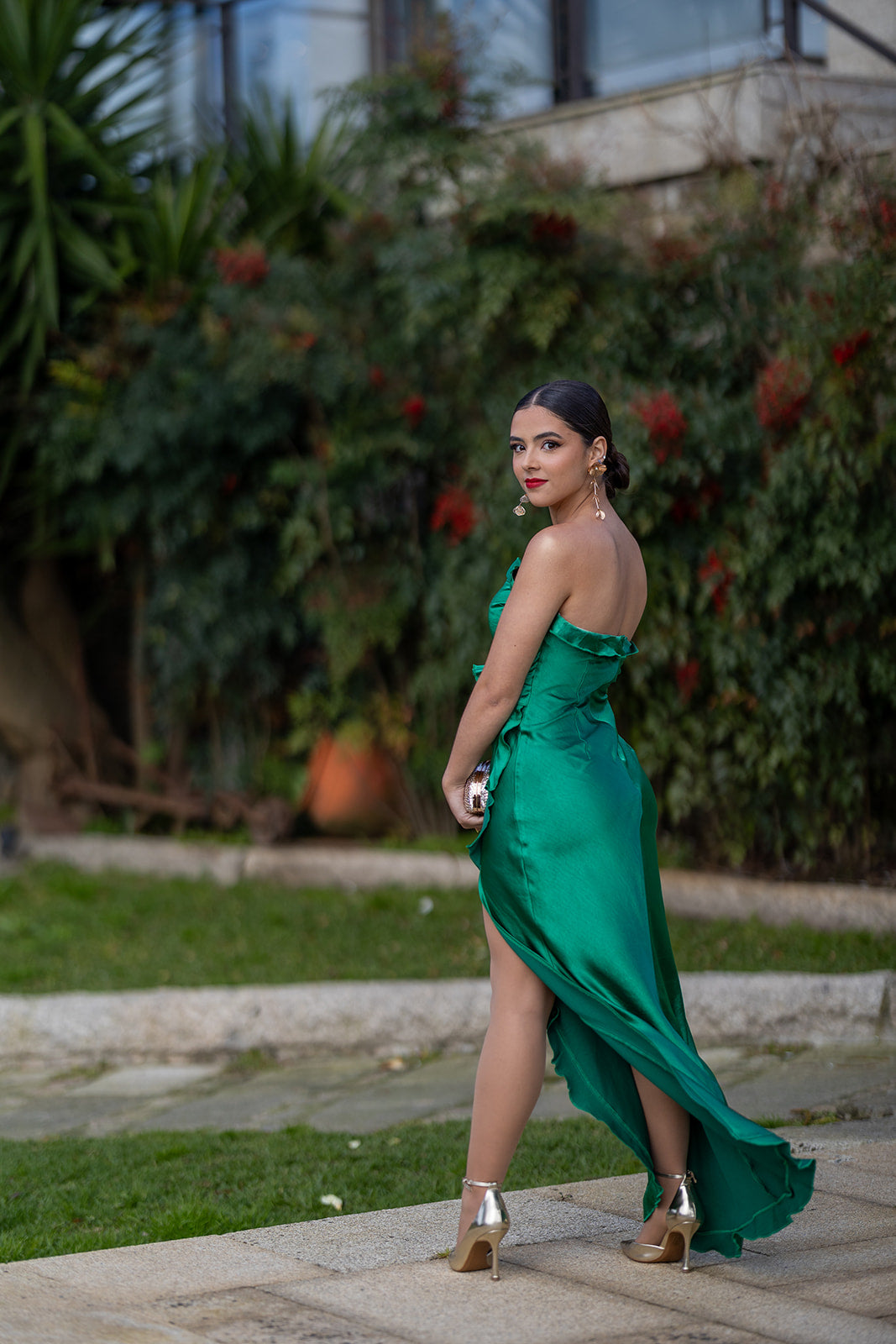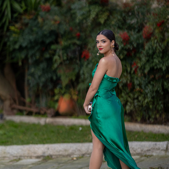 Vestido cai-cai com pormenor de folho por todo o remate.